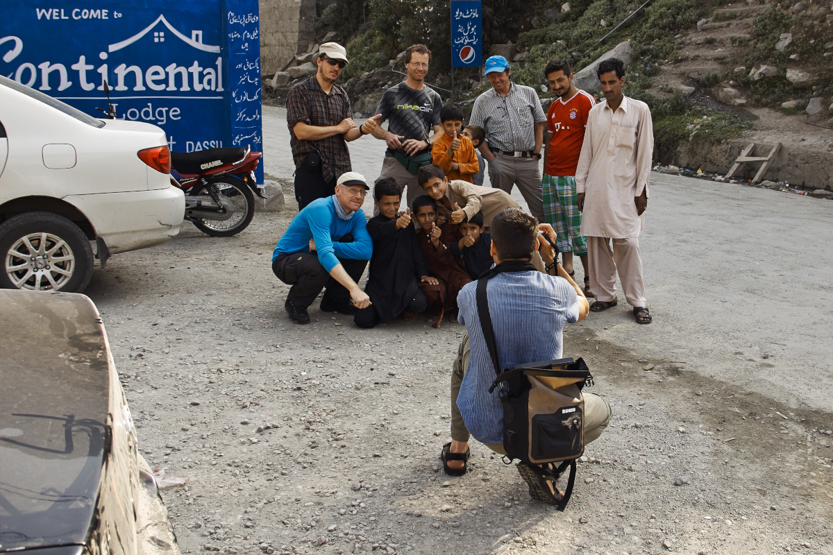 Team-Bild (ex Expeditionsleiter, der schießt das Photo vom Photo) mit Fahrer und Kindern.